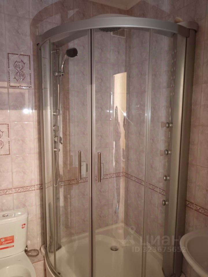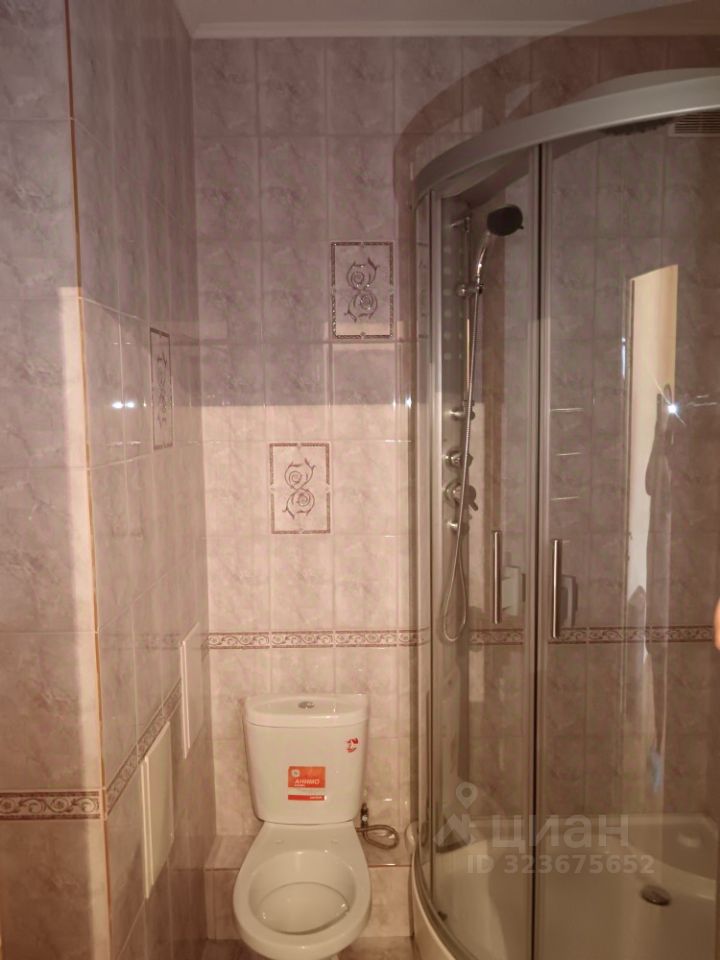 Ванная комната облицована кафелем, установлена хорошая душевая кабина. Комната оклеена обоями под покраску, на полу линолеум, на кухне, лоджии и в коридоре напольное покрытие кафель.