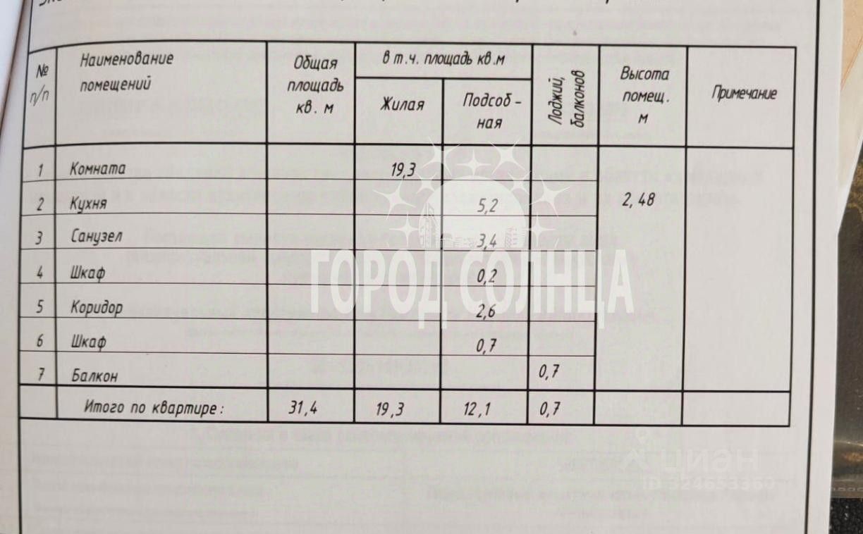 Общая площадь квартиры составляет 31.4 квадратных метров, из которых 19.5 квадратных метра жилая площадь. Квартира находится на пятом этаже пятиэтажного кирпичного дома, построенного в 1978 году. Высота потолков 2,5 метра.
