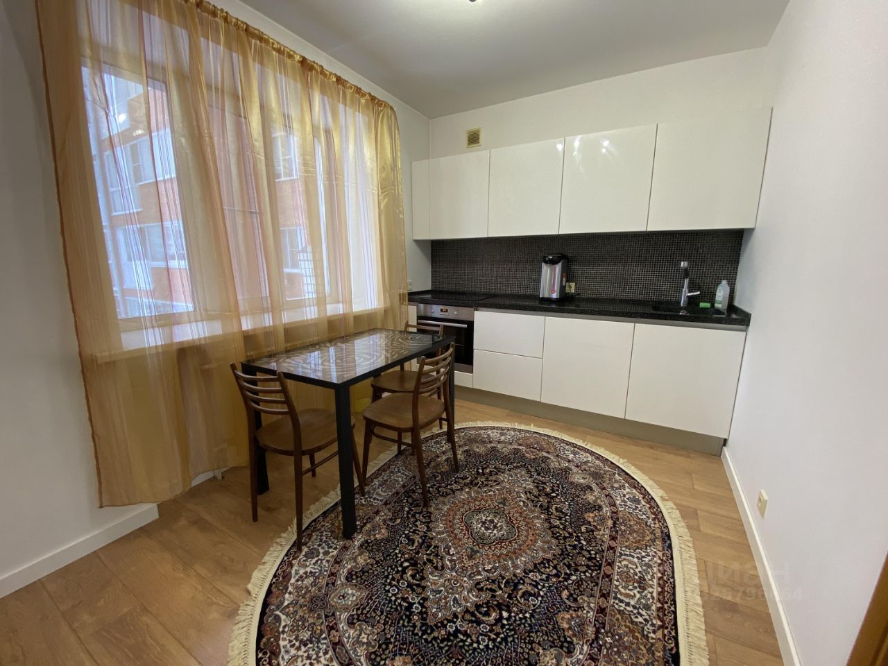 -кухня площадью 11 квадратов, зал 22 квадратных метра. В квартире остается кухонный гарнитур, электрическая плита, духовой шкаф, холодильник, бойлер, шкаф купе в зале, встроенный шкаф на балконе.