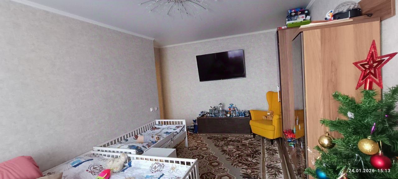 Просторная комната 19.7 м² с выходом на застекленный балкон(4,8 м²) с вместительным шкафом для хранения вещей. Установлен теплый пол.