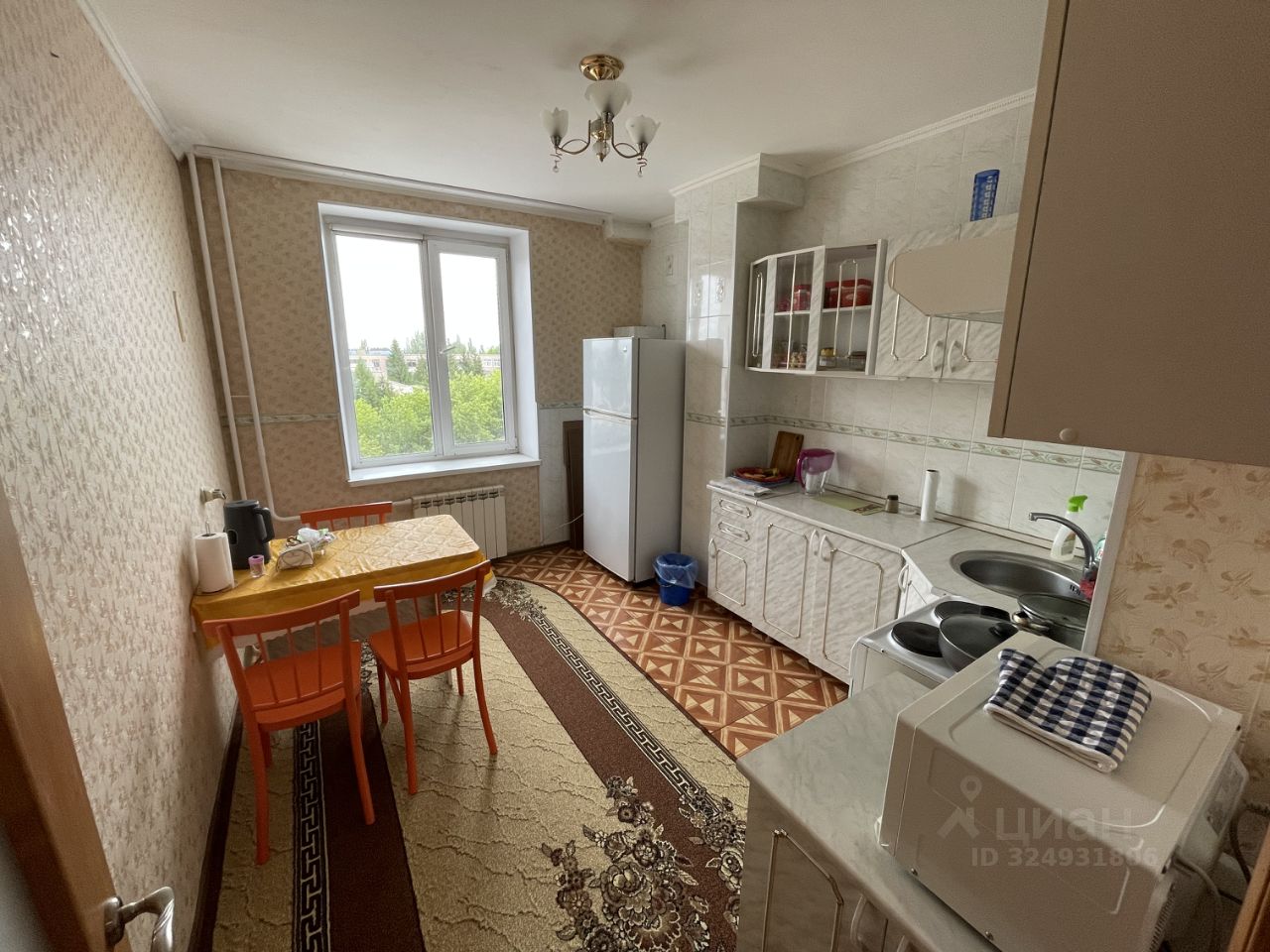 При продаже остается кухонный гарнитур с электроплитой, холодильник, стиральная машина, кухонный стол, микроволновая печь, шкафы в комнате и прихожей, диван, тумбочка.