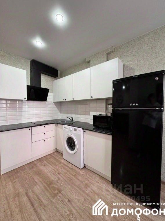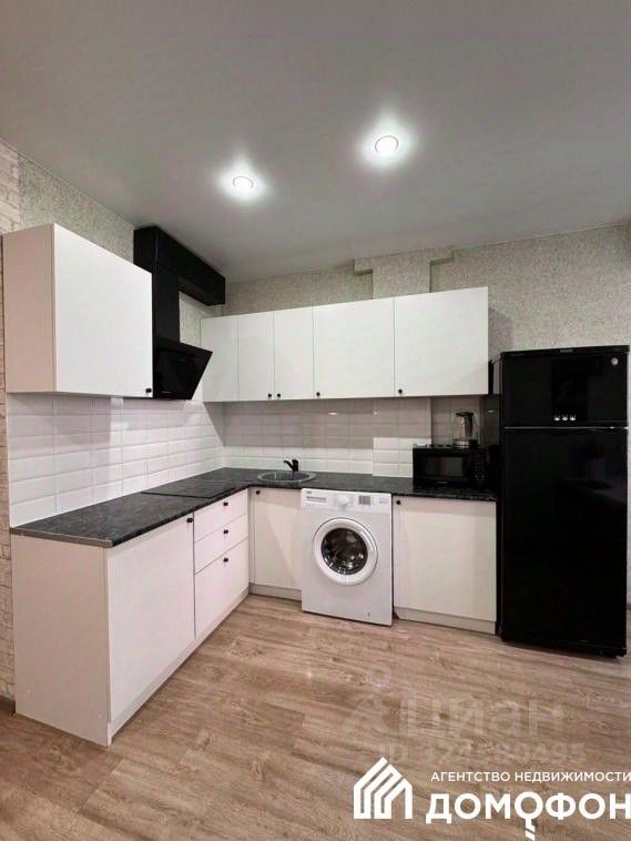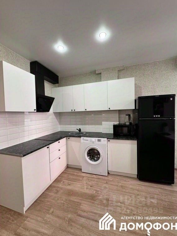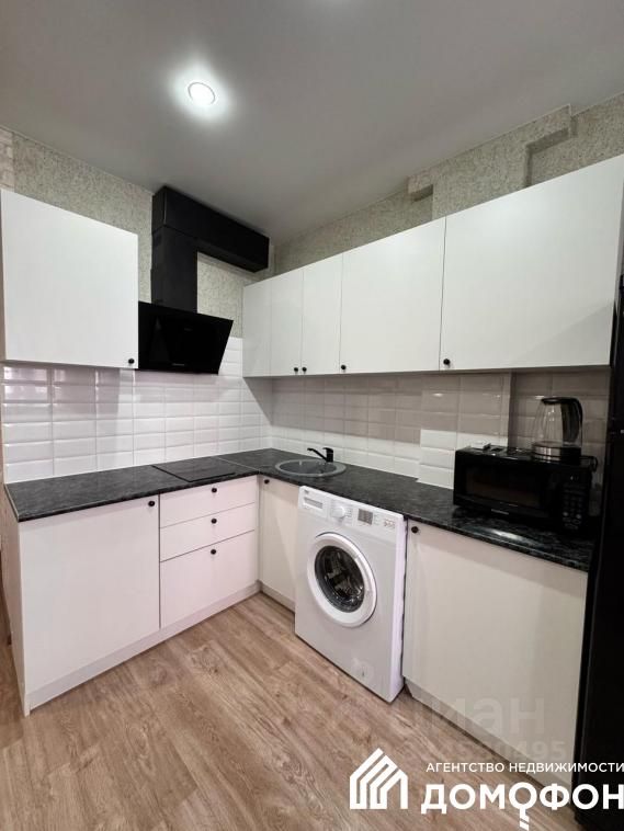Установлен современный, максимально удобный в использовании, кухонный гарнитур, полностью оборудованный качественной бытовой техникой.