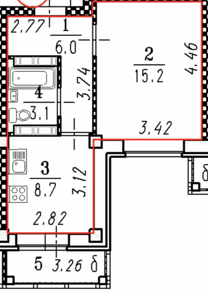 Кухня, спальня, ванная комната, коридор все пространства изолированы межкомнатными дверьми. Полноценная однокомнатная квартира, не студия.
