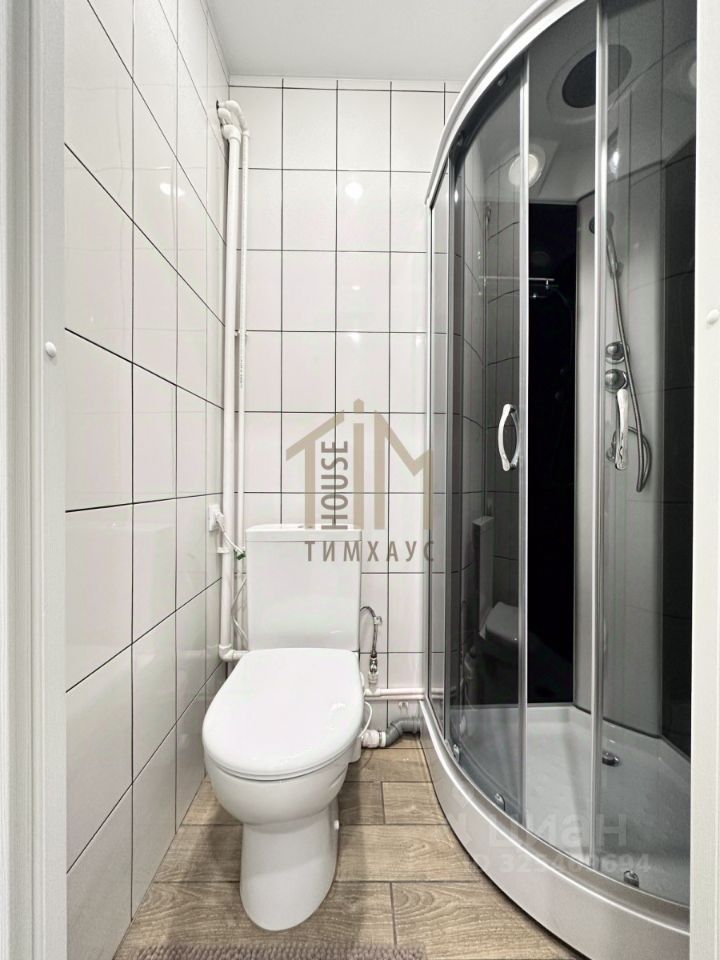 Современный ремонт в санузле: новая сантехника, душевая кабина, стильная плитка на стенах и керамогранит на полу.