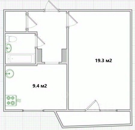 В квартире тепло и светло. Есть ниша для кладовой или гардеробной.