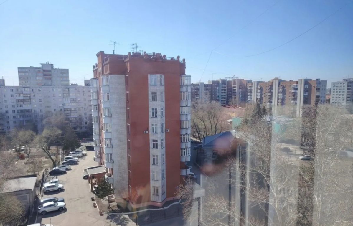 Балкон застеклен, окна ПВХ, с красивым видом на город.