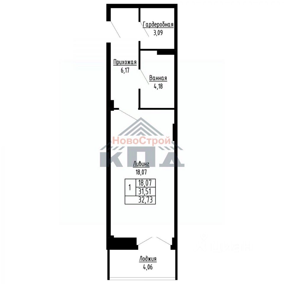 Площадь общая | 33 м² |