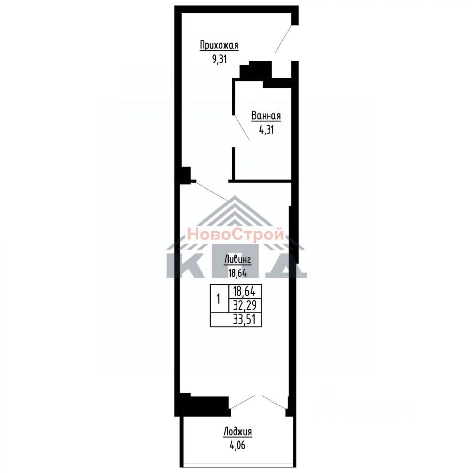 Площадь общая | 34 м² |