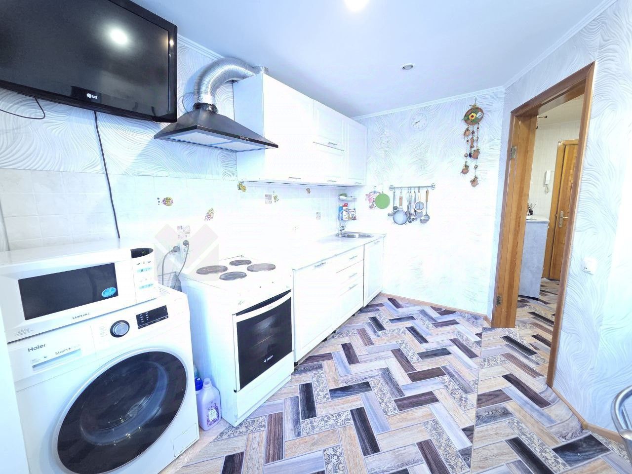 В квартире выполнен свежий косметический ремонт. Окна ПВХ. Хорошие межкомнатные двери. Санузел совмещён и выложен кафельной плиткой. Сантехника в отличном состоянии. Просторная кухня порадует будущих хозяев своей функциональностью. В квартире остаётся кухонный гарнитур, шкаф купе, который разделяет комнату на гостиную и спальную зоны.