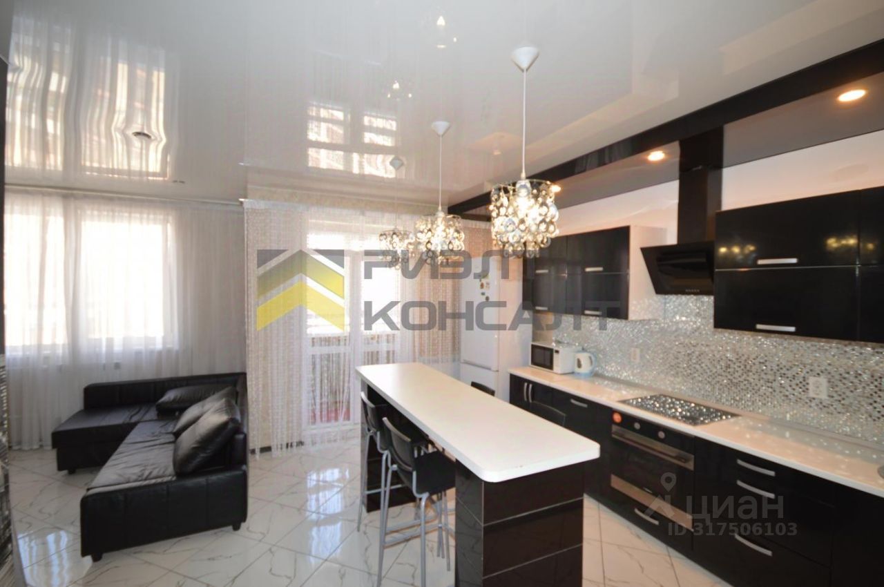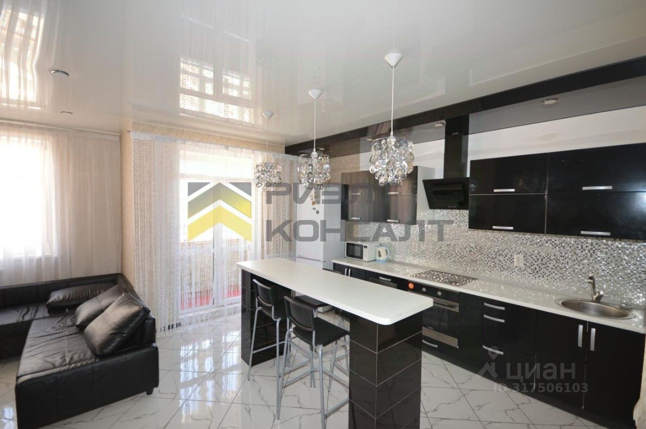 В цену включены кухонный гарнитур с шикарным фартуком из мозаики, а также вся встроенная техника: вытяжка, варочная панель и духовой шкаф.