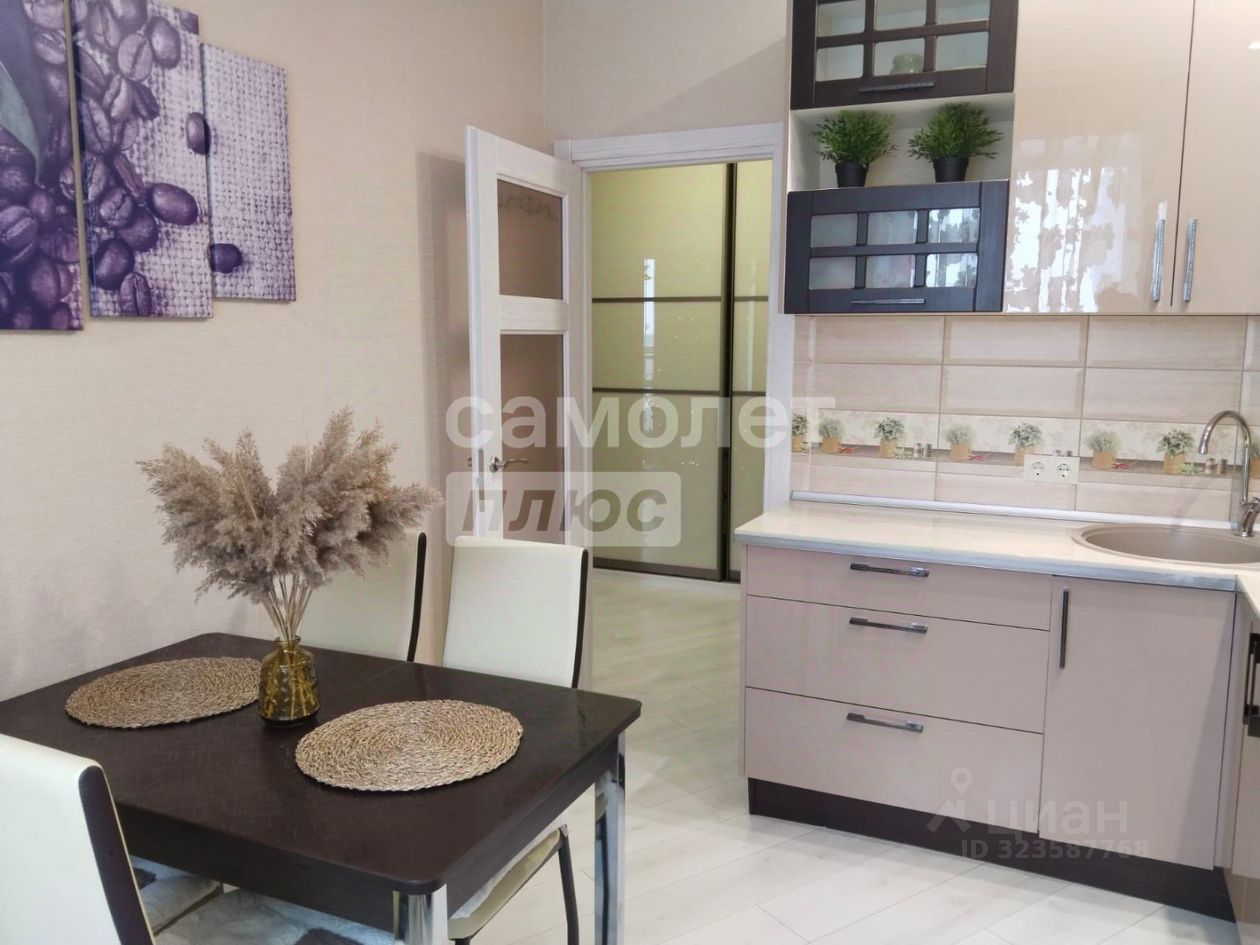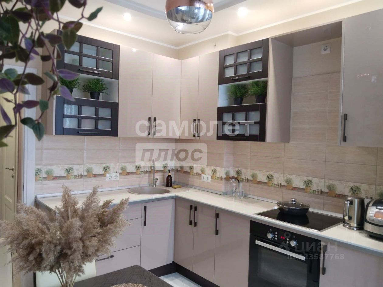 кухонный гарнитур с встроенной бытовой техникой в подарок . с комнаты выход на лоджию с панорамным остеклением, с потрясающим видом, особенно в вечернее время.