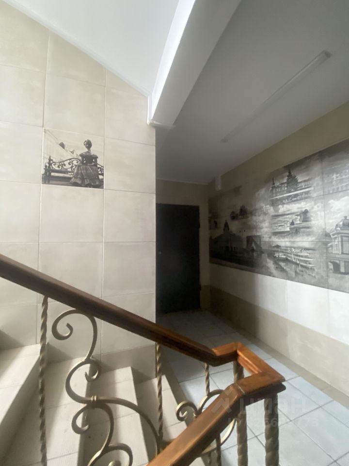 Панельный дом. Чистый подъезд, в котором недавно произведен ремонт, стены в подъезде отделаны стильной плиткой.