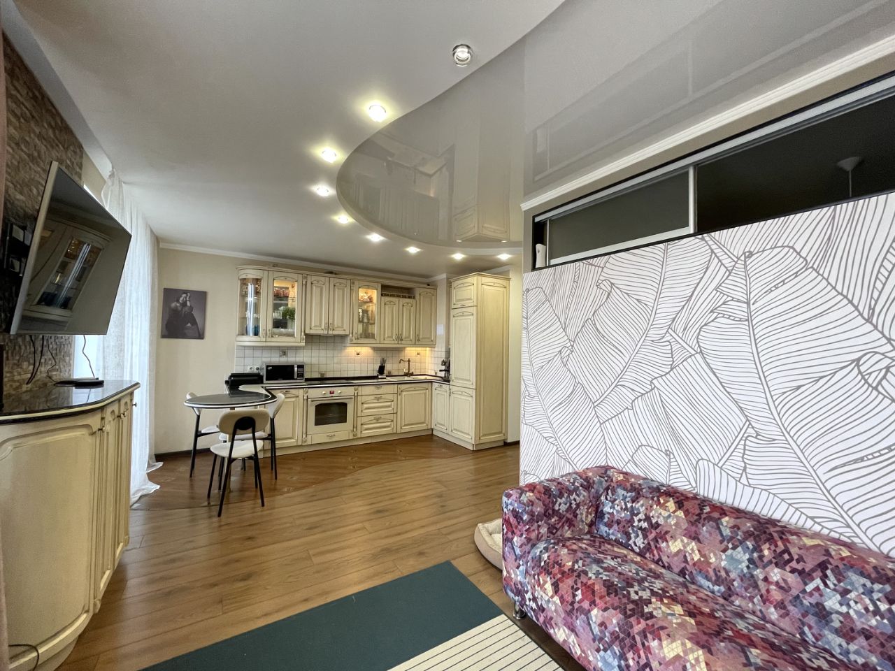 Предлагает меблированную квартиру в современном престижном доме 2011 года постройки.