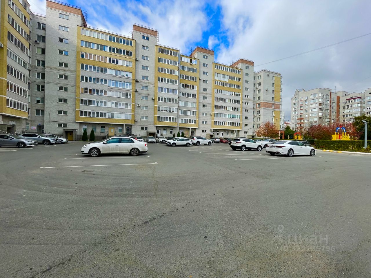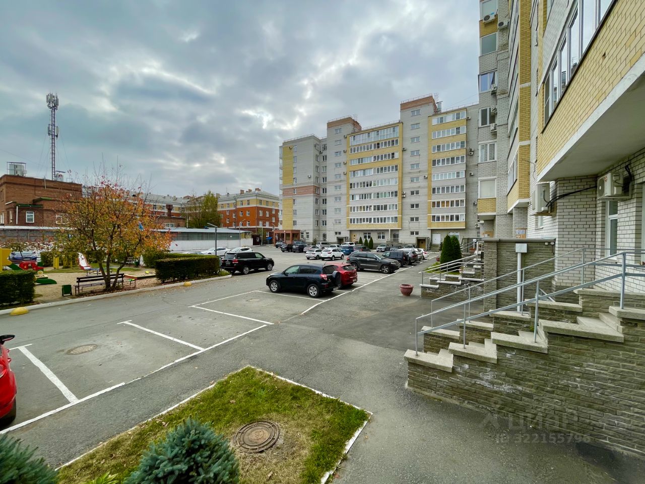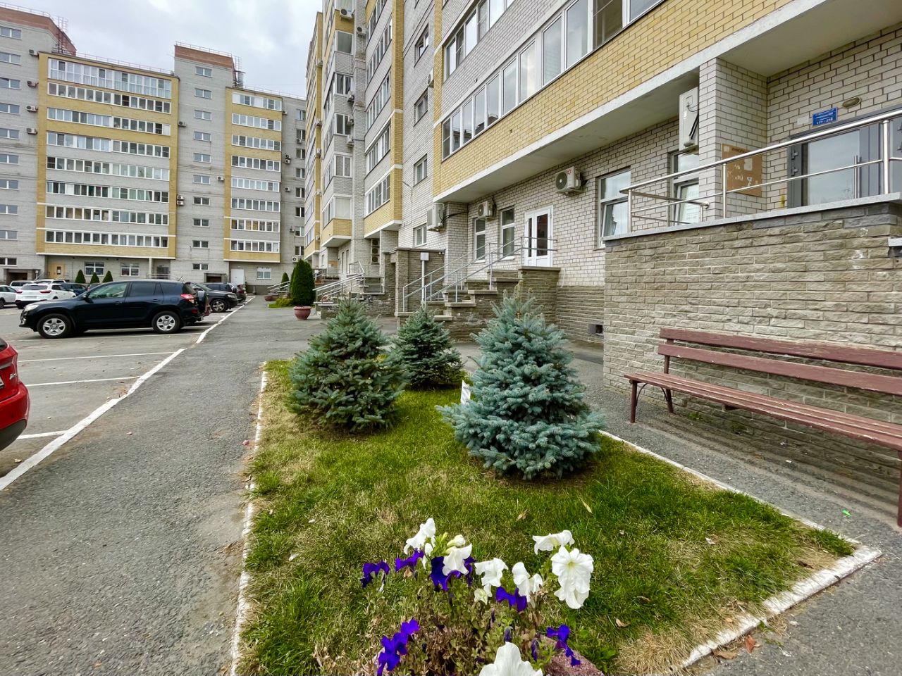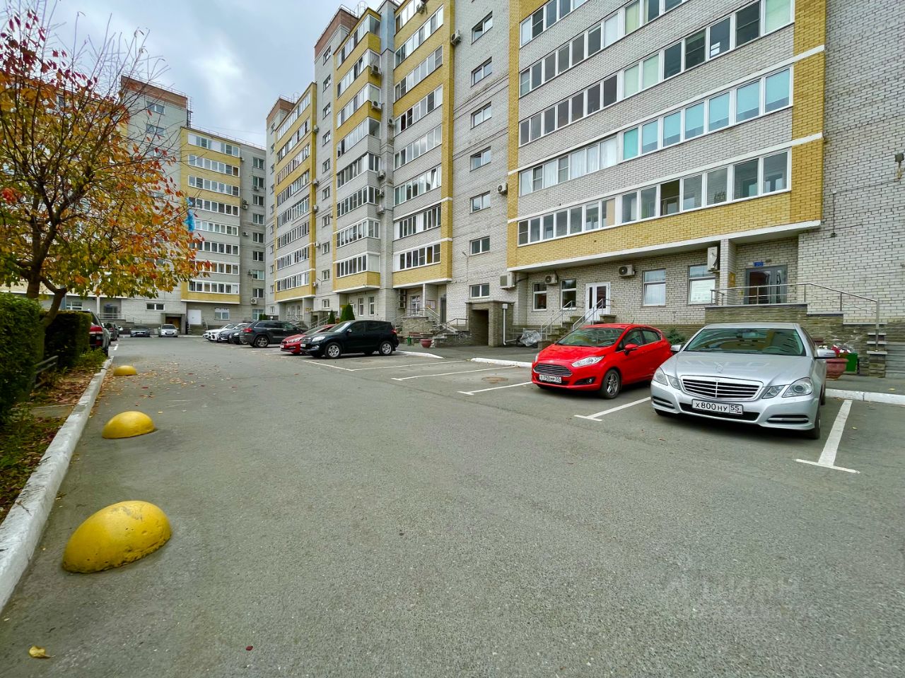 Парковка большая во дворе.