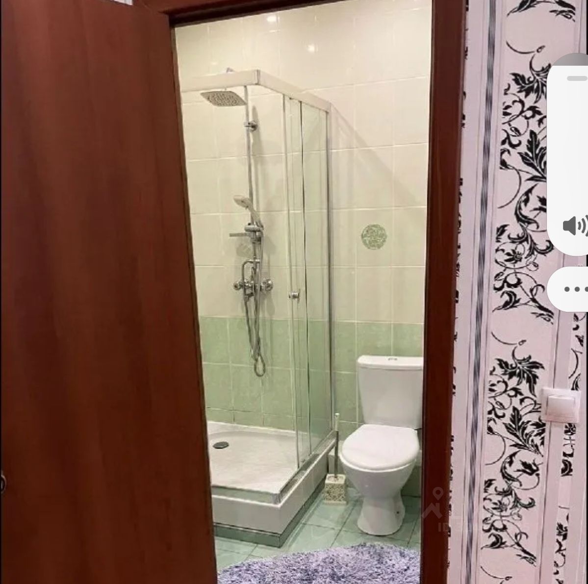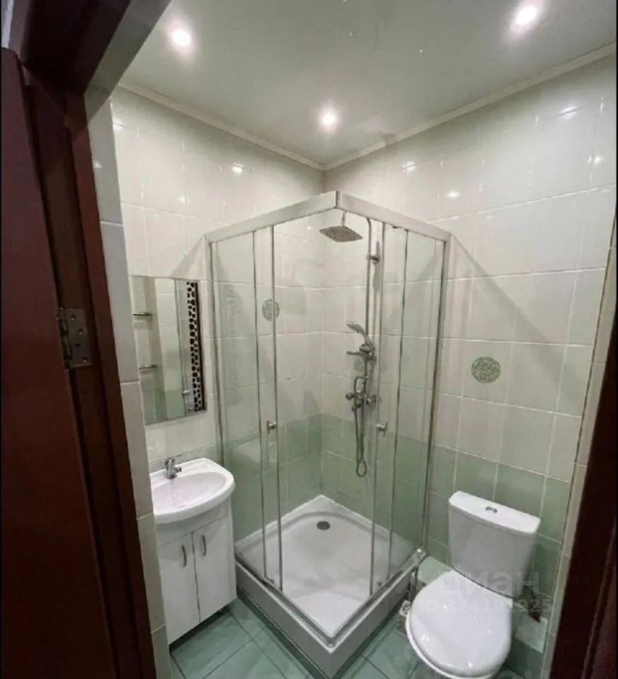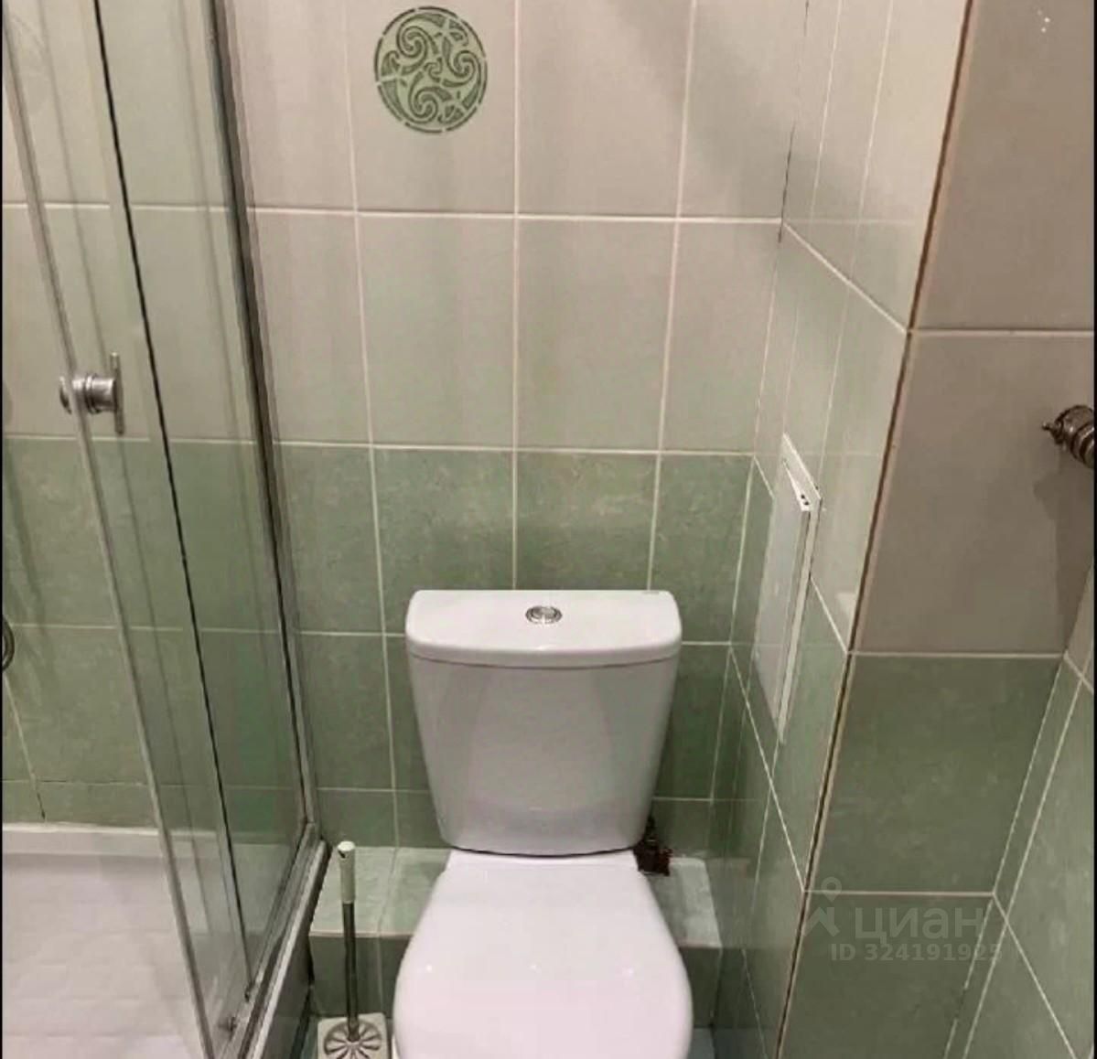 Санузел совмещен, установлена душевая кабина, отделка кафельной плиткой.