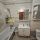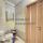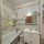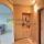 На полу ламинат и керамическая плитка. Сан.узел совмещен в кафеле.