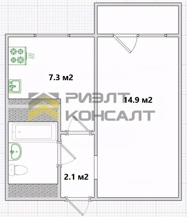 Квартира включает в себя комнату, кухню, совмещенный санузел, прихожую, застекленную лоджию.