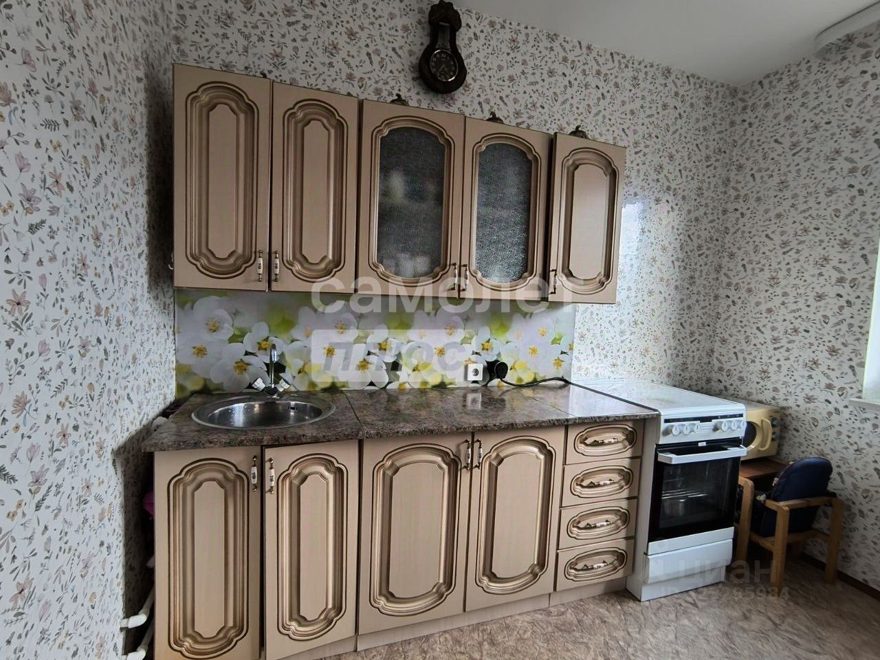 Кухня- на все хватит квадратных метров! И для приготовления еды и для посиделок с друзьями. Остается кухонный гарнитур и электроплита Нansa.