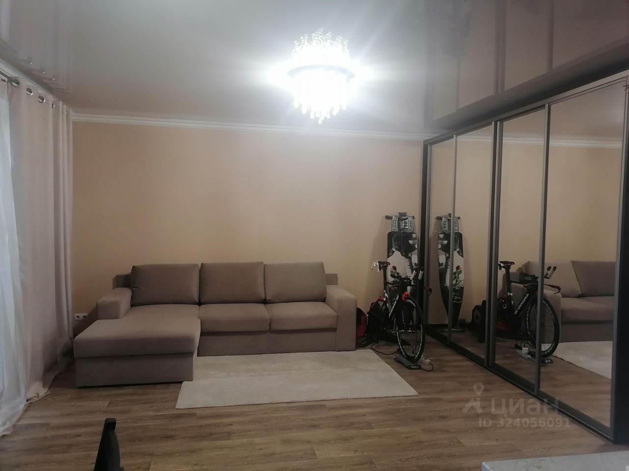 В квартире остается кухонный гарнитур, варочная панель, духовой шкаф, люстры, шторы и гардины, вместительный шкаф - купе.