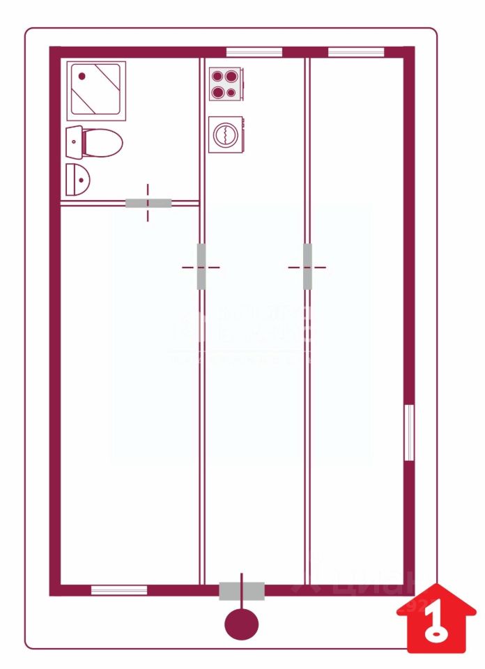 Из квартиры открывается вид на улицу, а её расположение в центре жилого комплекса делает её особенно привлекательной. Общая площадь — 28,6 кв. м, из которых 18 кв.м приходится на жилую, а 6 кв. м — на кухню.