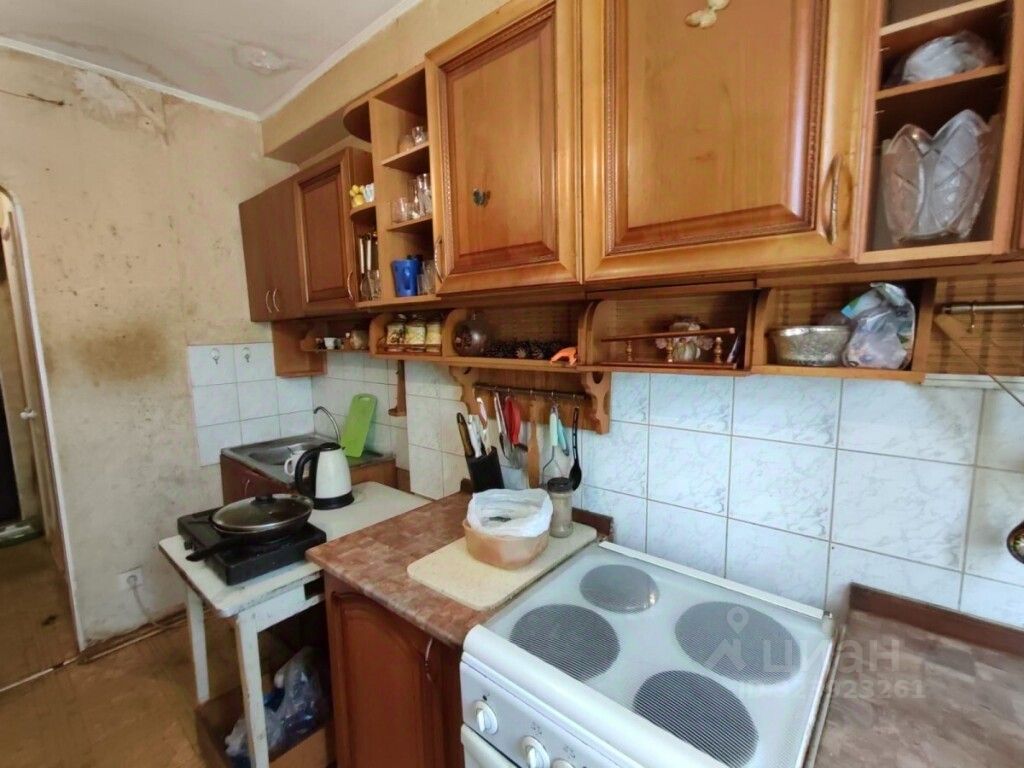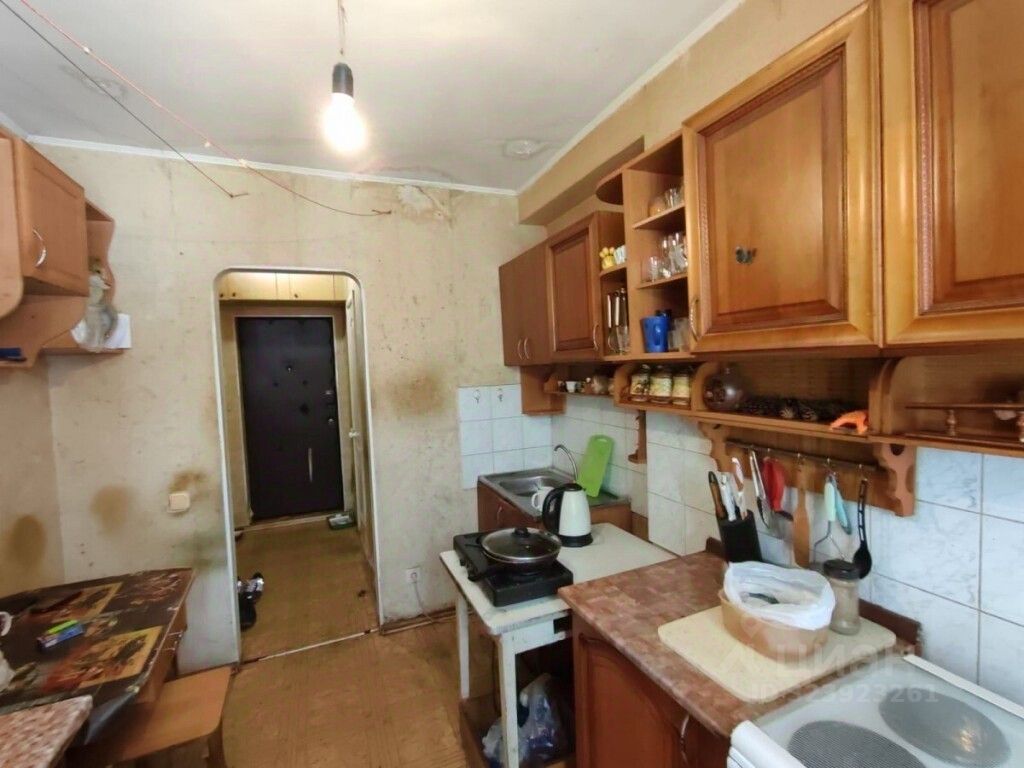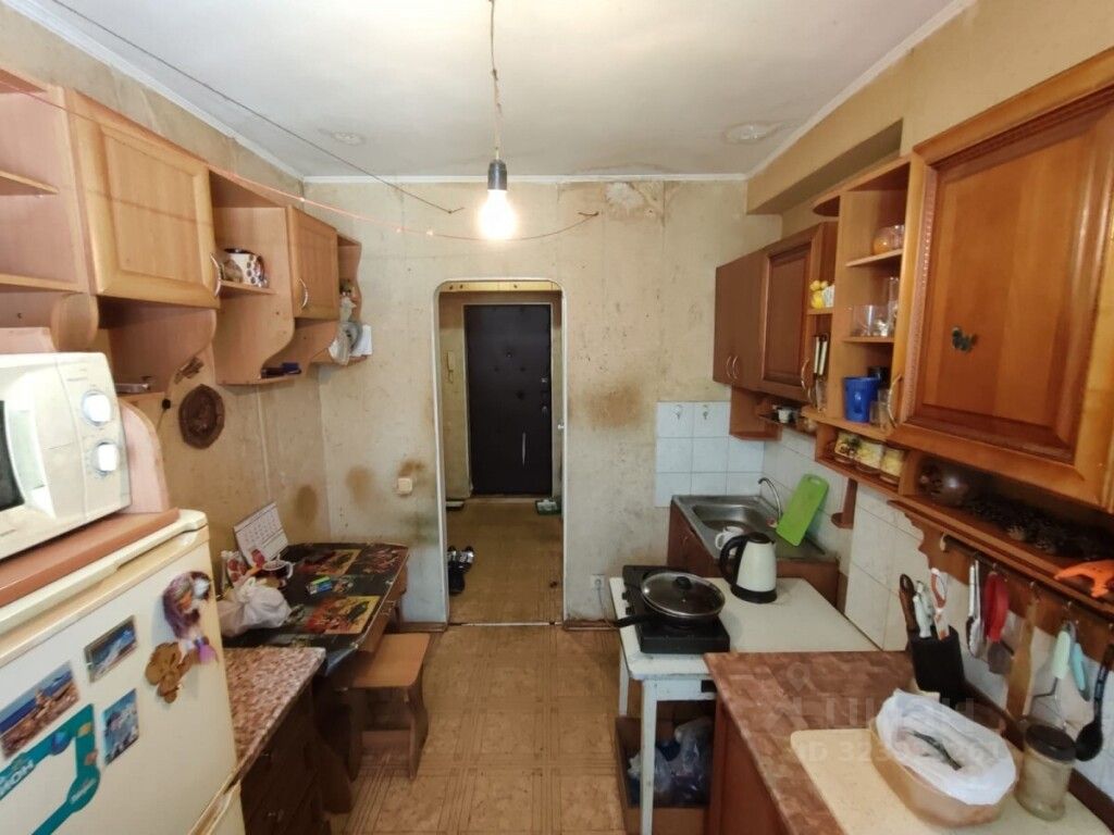 В квартире остается кухонный гарнитур, под дерево.