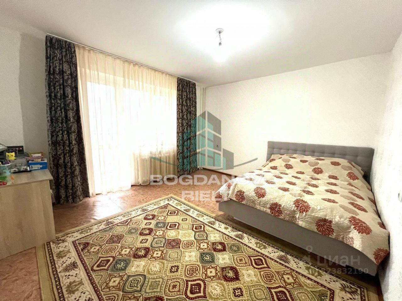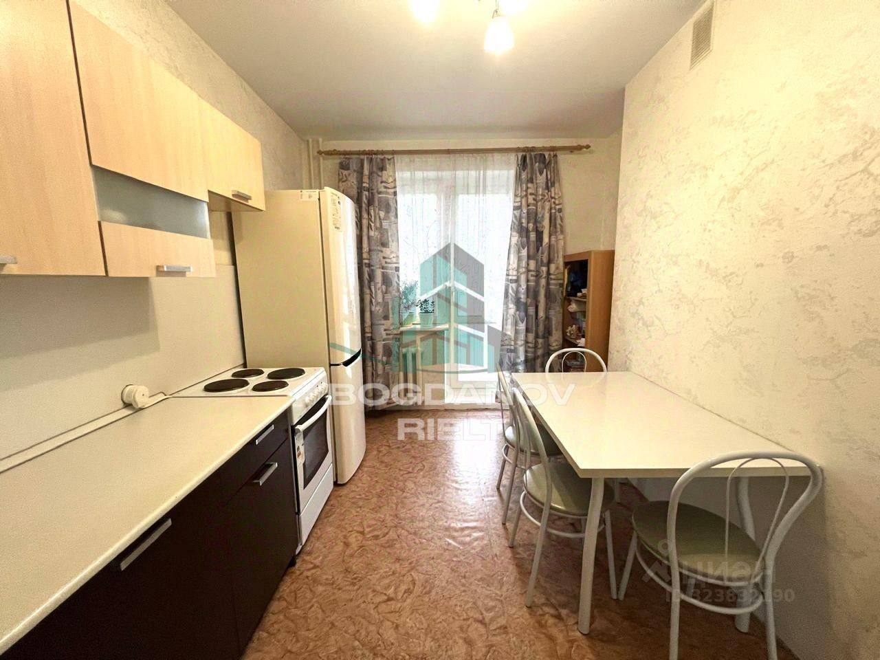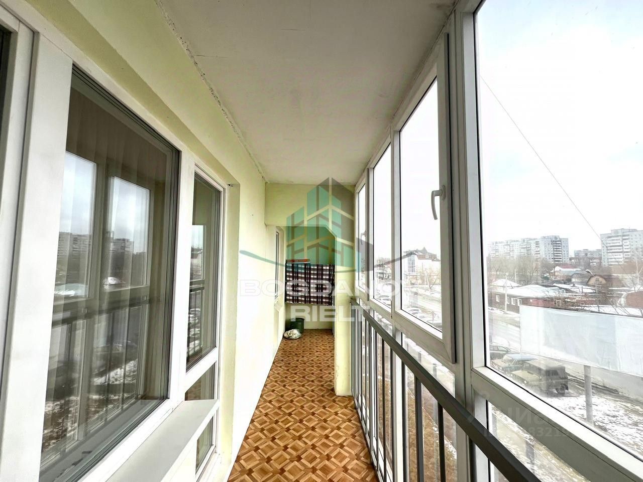 - Лоджия: Большая застекленная ПВХ лоджия с двумя окнами. Выход на лоджию с комнаты и с кухни