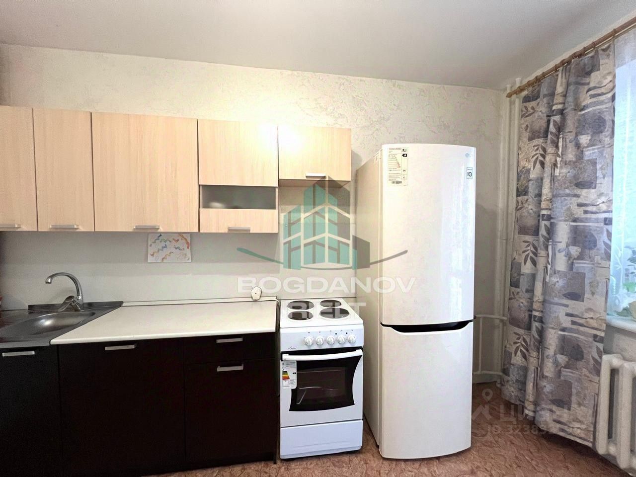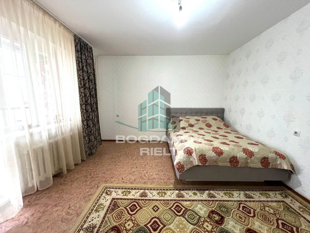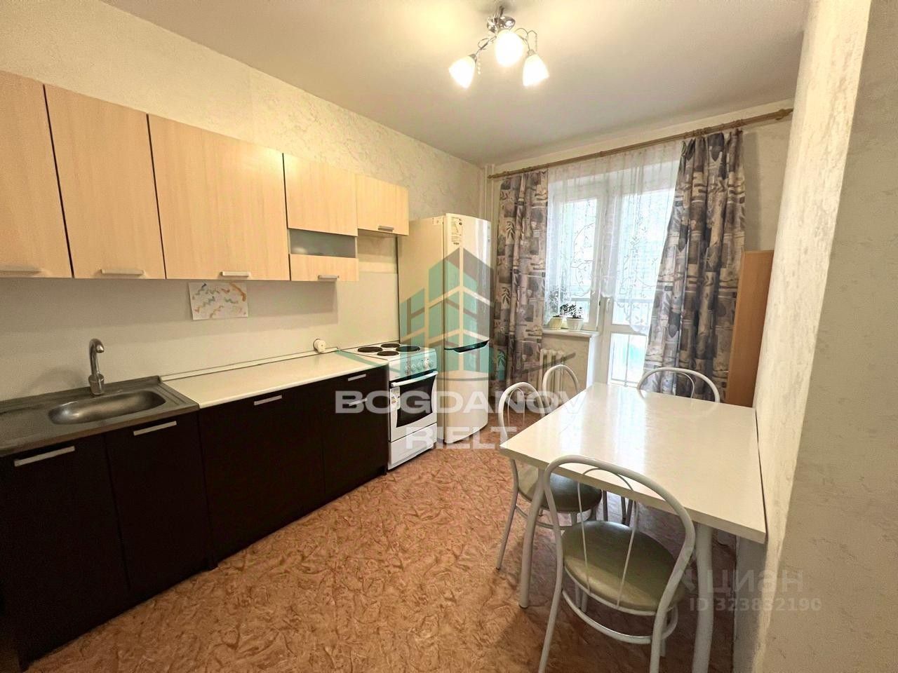 - Лоджия: Большая застекленная ПВХ лоджия с двумя окнами. Выход на лоджию с комнаты и с кухни