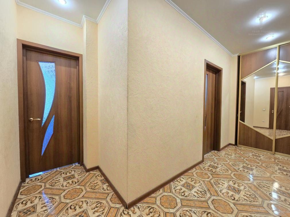Вместительный гардероб в прихожей, большая кухня и ванная, комнату можно разделить на рабочую и спальную зоны.