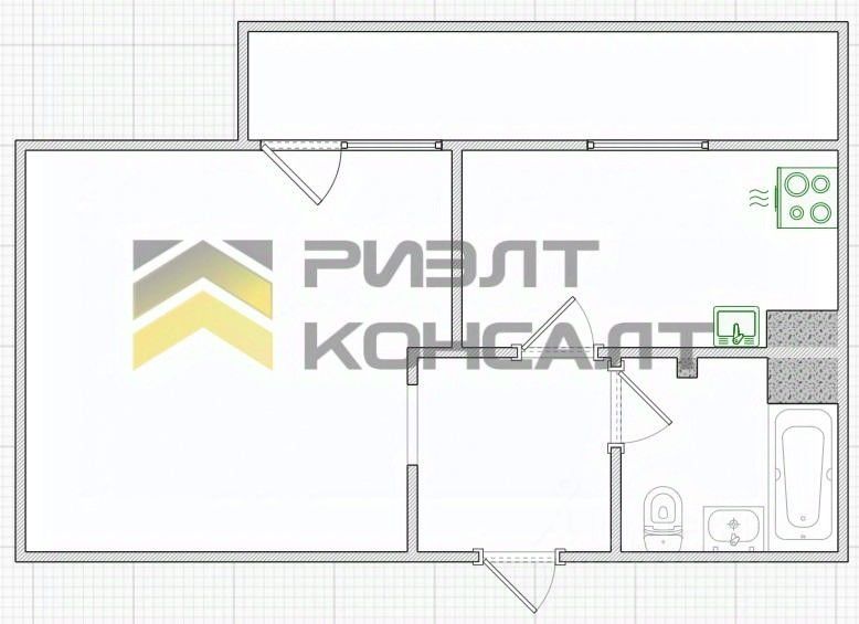 Удобная планировка включает в себя кухню, изолированную комнату, совмещённый санузел.