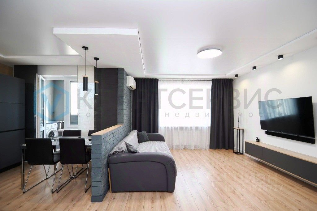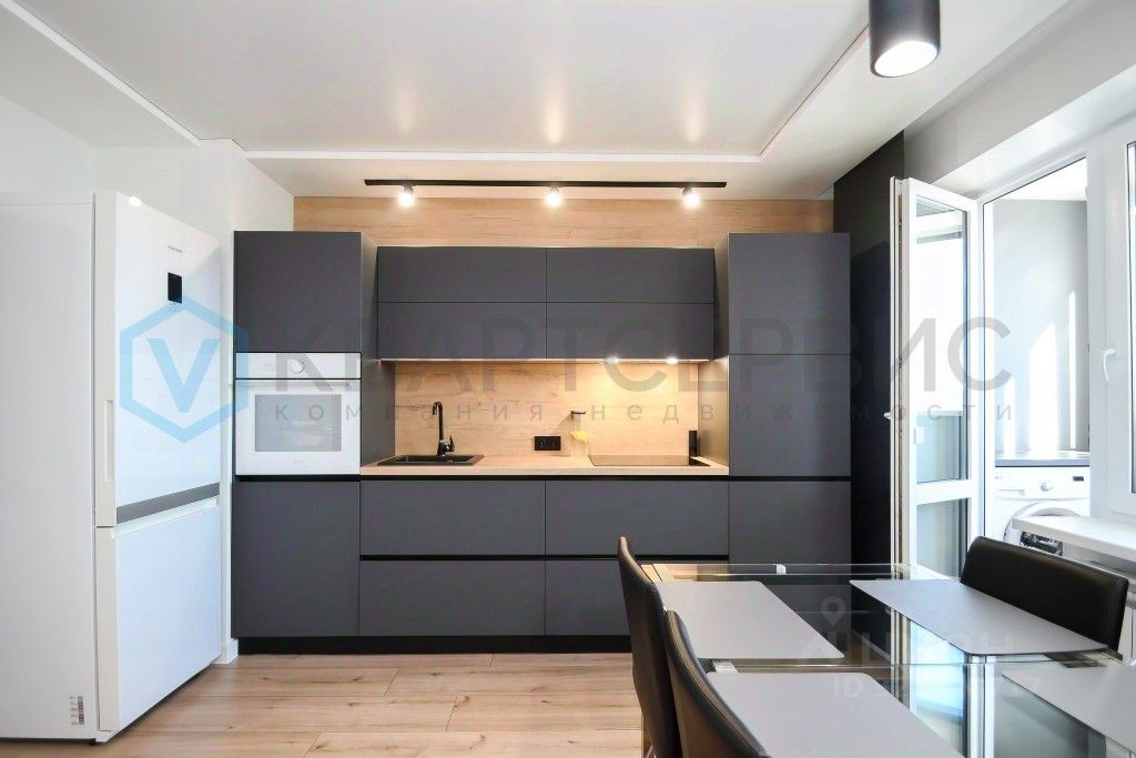 -Просторную, солнечную кухню-гостиную с функциональным кухонным гарнитуром и с выходом на утепленную лоджию,