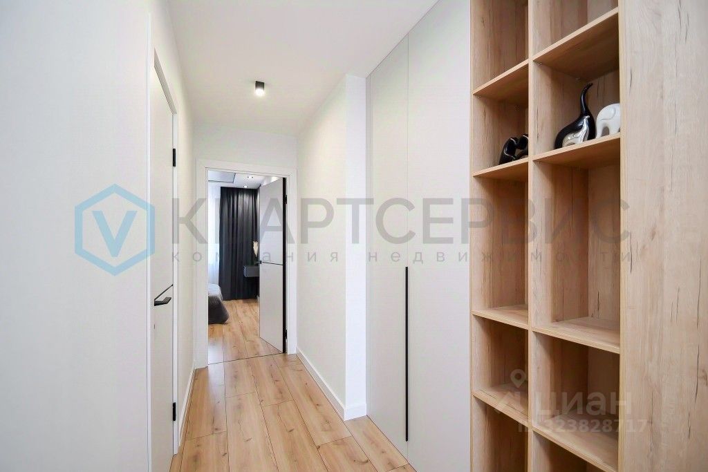 В коридоре дополнительный встроенный шкаф для хозяйственных вещей. Высокий этаж, окна выходят на разные стороны — в квартире много солнца и естественного света на протяжении дня, также нет шума от магистрали в спальне.