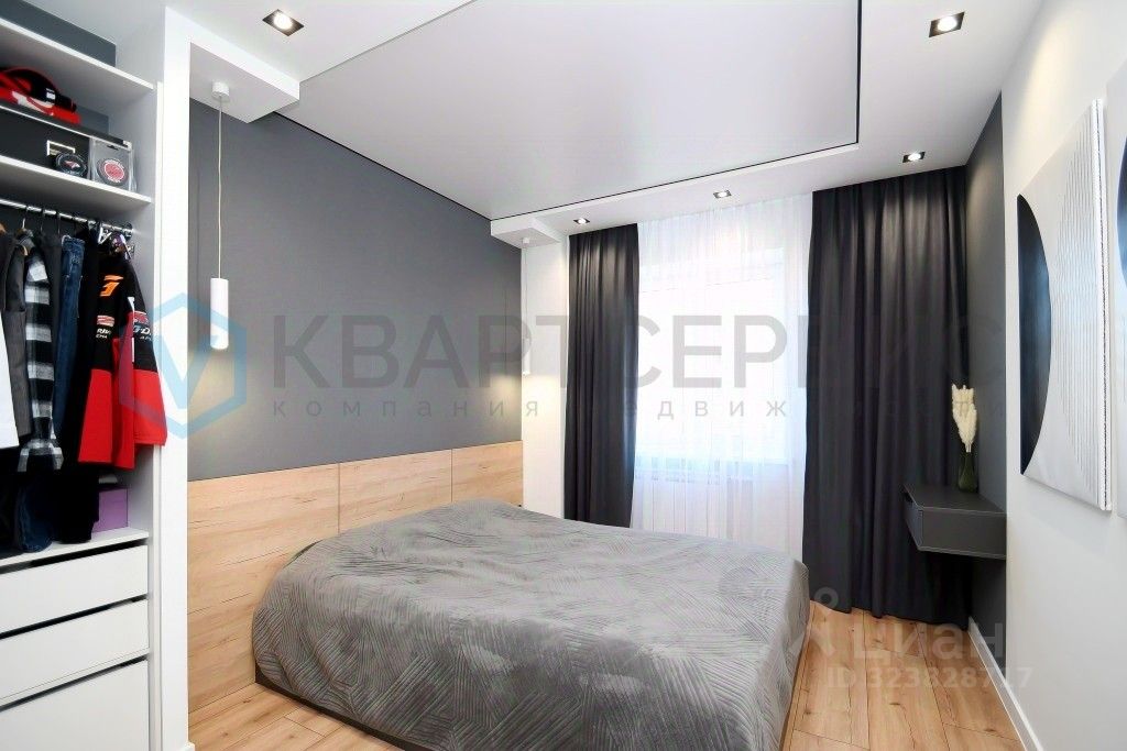 -Уютную спальню со встроенным угловым шкафом,