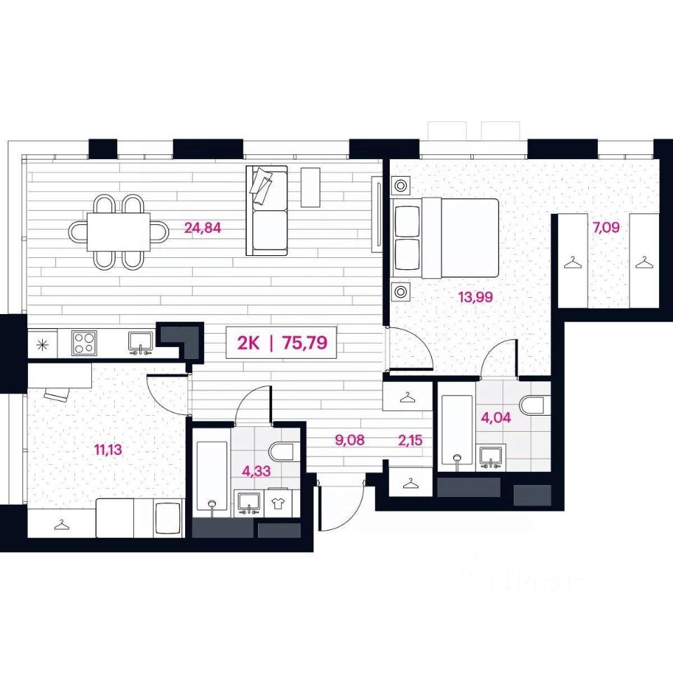 | Площадь общая | 75.8 м² |