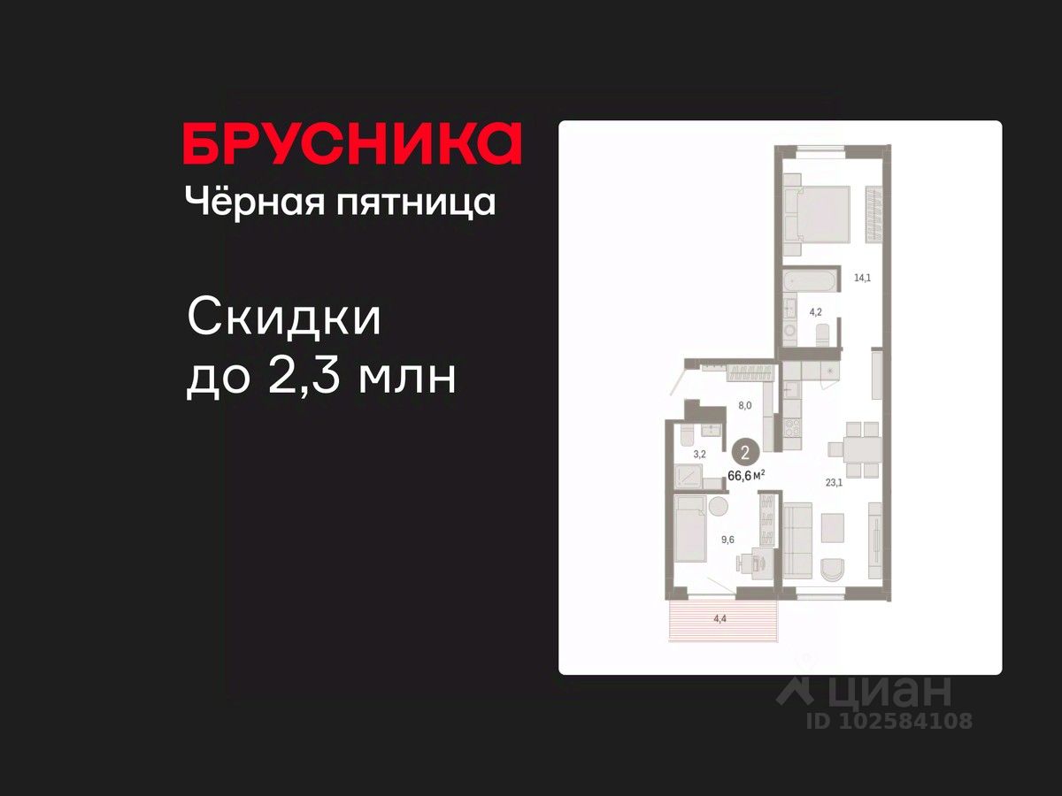 2-комн. квартира с предчистовой отделкой в Кварталы Драверта на 4 этаже. Общая площадь: 66.59 кв.м. Высота потолков 2.7 м.