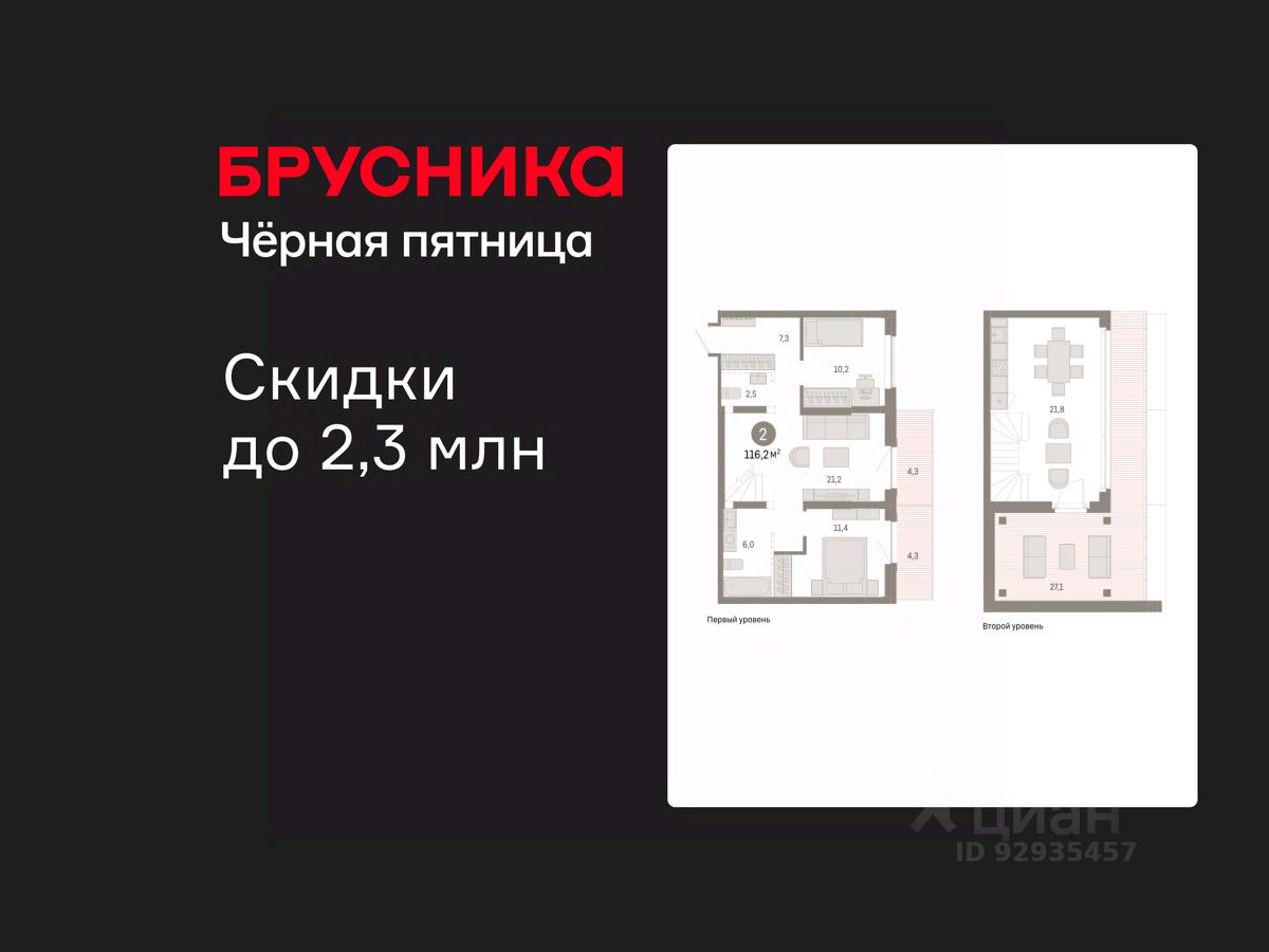 Двухуровневая квартира с кухней-гостиной и двумя спальнями в Кварталах Драверта. Особенности планировки: второй санузел, двухуровневая, разнесённые спальни, предчистовая отделка, балкон, терраса на крыше.