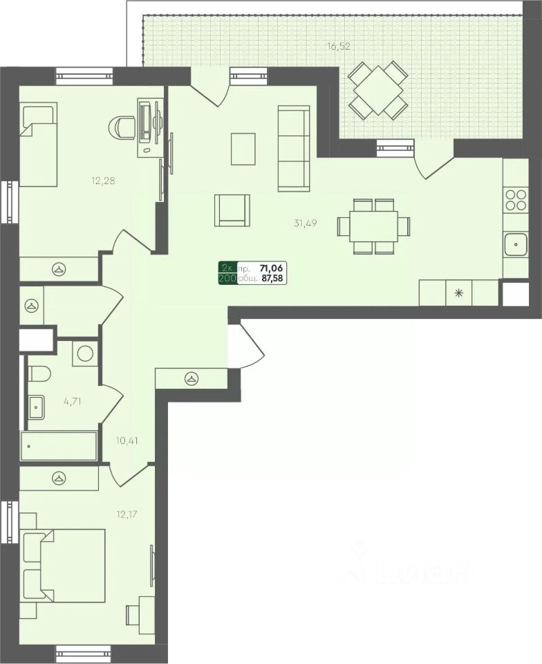 Продаётся 2-комнатная квартира в строящемся доме (ГП 2.1), срок сдачи: III-кв. 2026, общей площадью 87.58 кв.м., на 5 этаже.