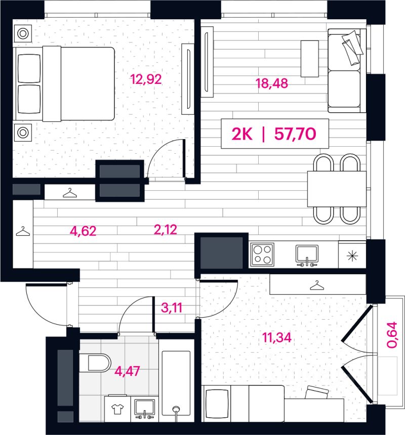 Площадь общая | 57.7 м² |