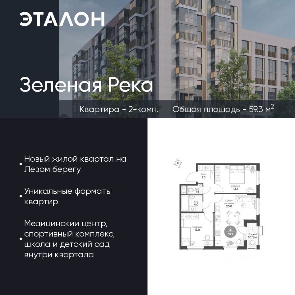 Продается квартира 406, по адресу г. Омск, ул. Волгоградская, корпус Зеленая река, 2 очередь, корпус 3 в Зеленая Река на 10 этаже, с площадью 59.3 м2.