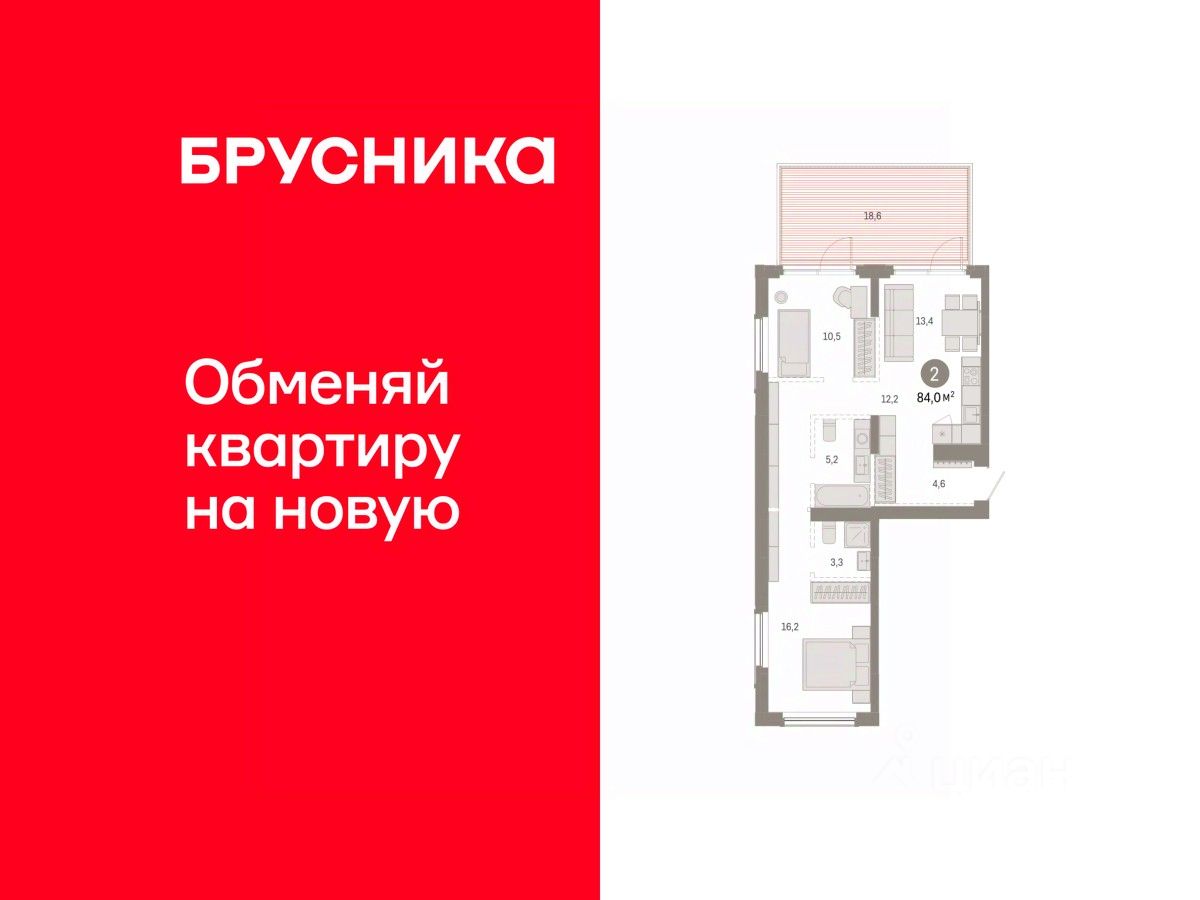 Двухкомнатная квартира от застройщика с предчистовой отделкой в Кварталы Драверта на 2 этаже. Общая площадь: 84.02 кв.м. Высота потолков 2.82 м.