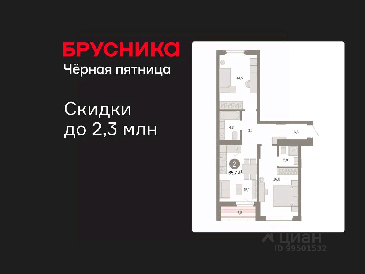 Продается двухкомнатная квартира с предчистовой отделкой в Кварталы Драверта на 2 этаже. Общая площадь: 65.73 кв.м. Высота потолков 2.82 м.