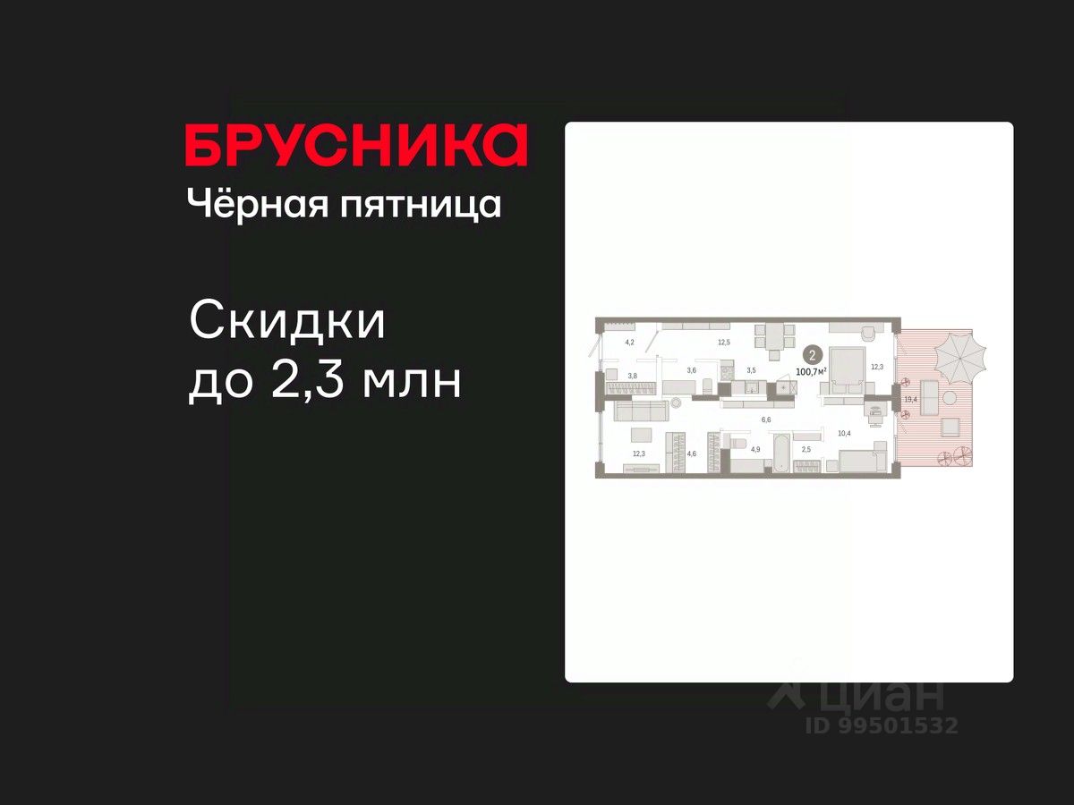 Просторная 2-комн. квартира с предчистовой отделкой в Кварталы Драверта на 1 этаже. Общая площадь: 100.7 кв.м. Высота потолков 2.7 м.