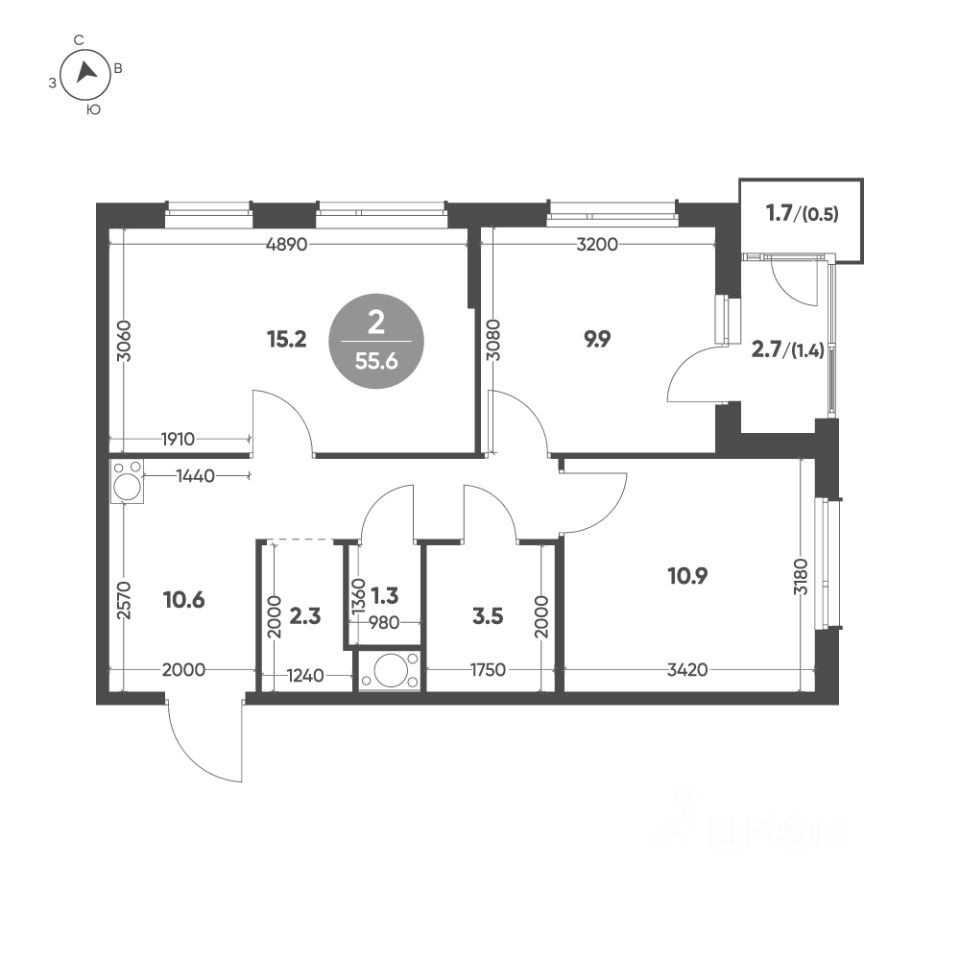 | Площадь общая | 55.6 м² |
