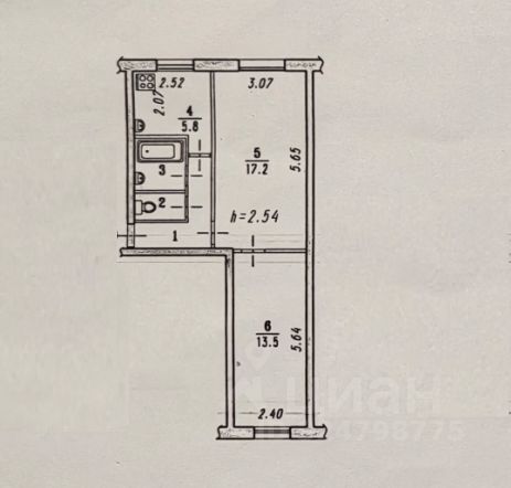 Жилая площадь 30,7 кв.м. раздельный санузел. Площадь кухни 5,8 кв.м.