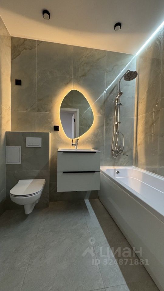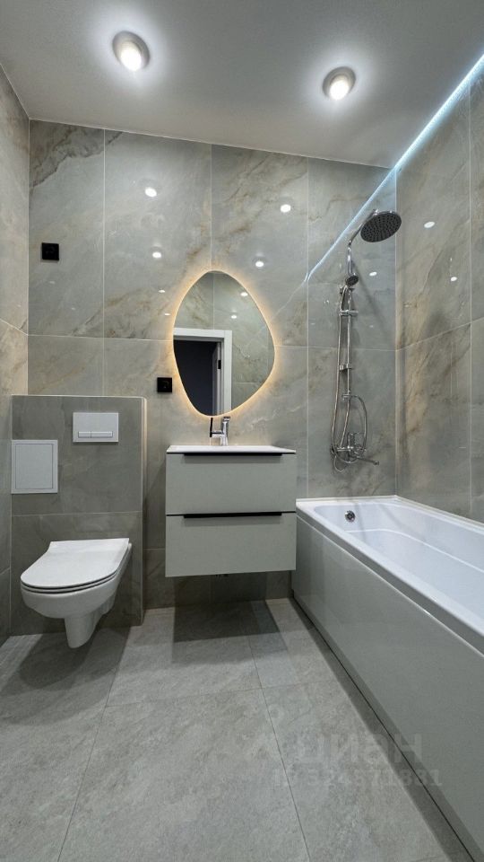 -Просторный совмещенный санузел отделан широкоформатной плиткой-керамогранит, оборудован электрическим полотенцесушителем, инсталляция, гигиенический душ.Предусмотрены выводы для стиральной машины, водонагревателя. Лаконичное освещение!