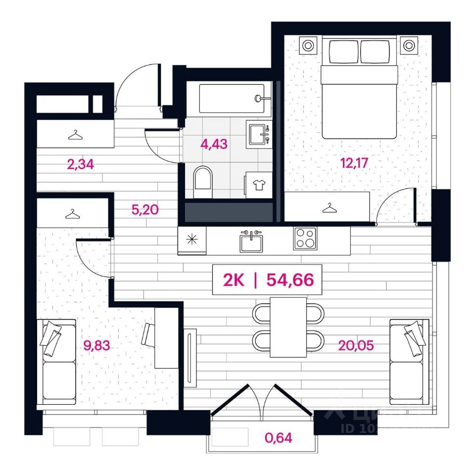 | Площадь общая | 54.9 м² |