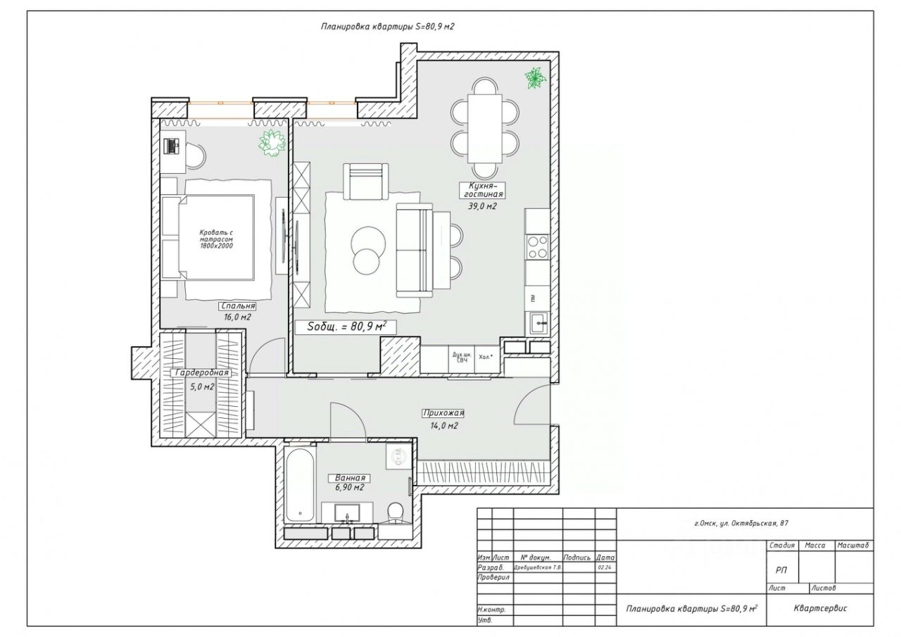 Планировка квартиры позволяет выделить кухню-гостиную!