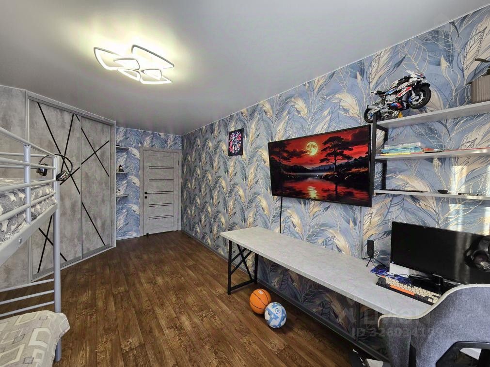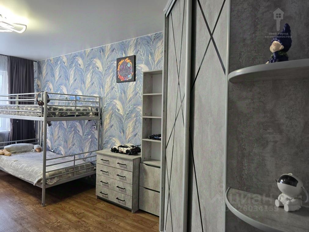 Оцените удобную планировку: изолированные комнаты, раздельный санузел, вместительная гардеробная закрыта раздвижными зеркальными дверцами.