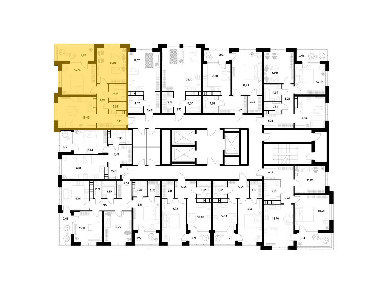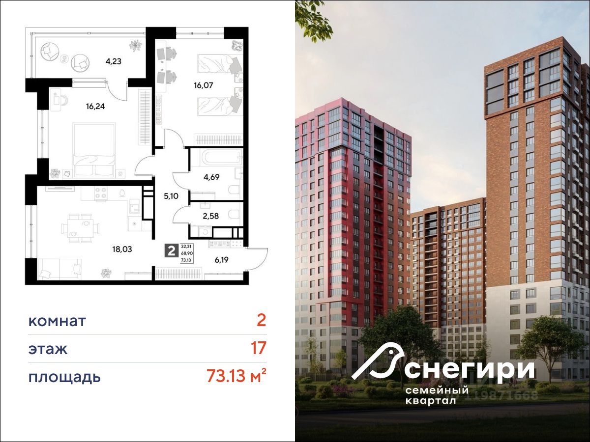 ЖК ''Снегири'', г. Омск, корпус 2 Срок сдачи: (4 кв. 2027, общей площадью 73.13 кв.м., на 17 этаже.)