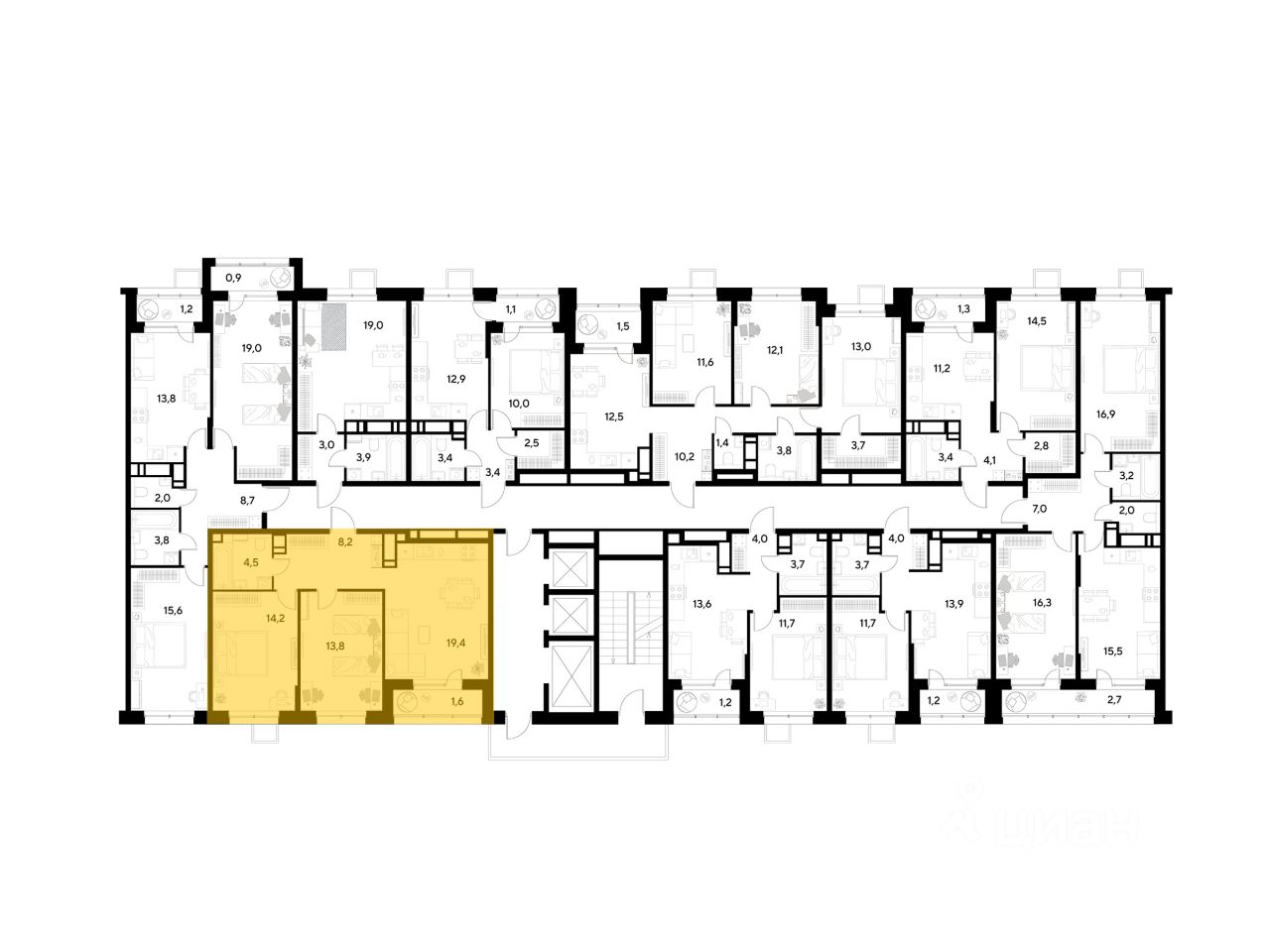 Площадь кухни19.4 м²