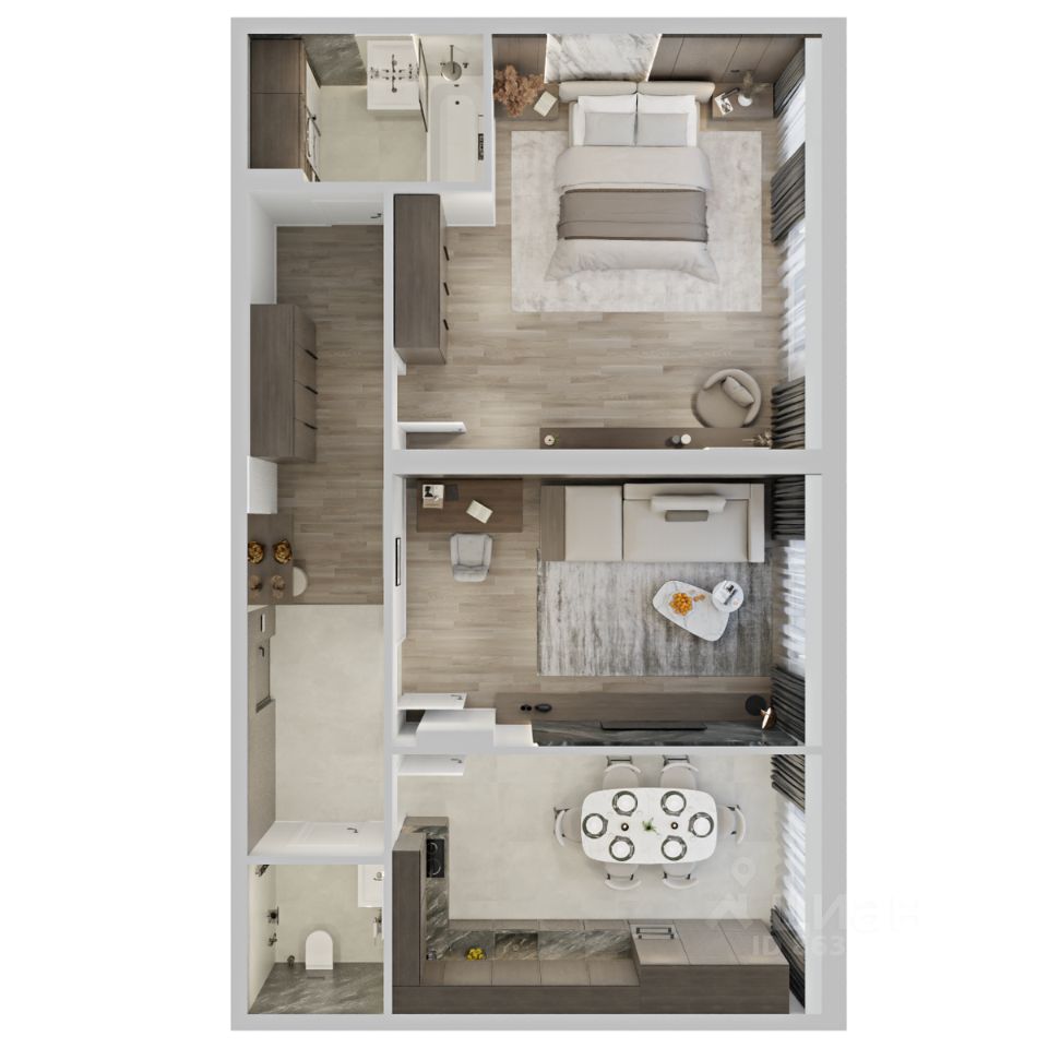 Проект предлагает просторные, гибкие и трансформируемые квартиры с потолками от 2,85 м до 4,8 м, площадью от 33 м² до 193,2 м², обеспечивающие удобство и эффективное использование пространства.